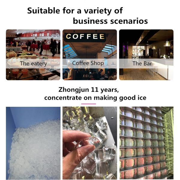 Elaborate configuration would improve the efficiency of ice making. Each accessories could be operate harmoniously to ensure machine more longer lifetime and energy saving.